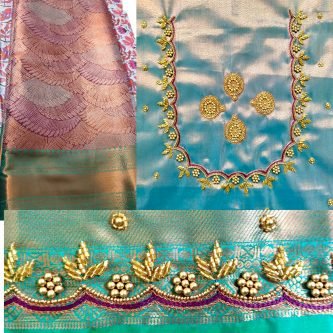 Intricate Bridal Blouse Embroidery Design with French Knot and Zardosi Work