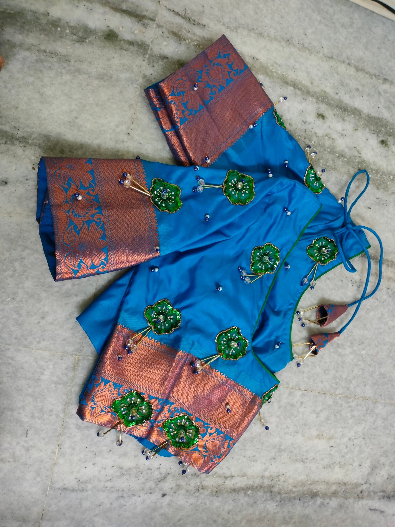 The dangling beads add movement and charm, making the blouse look even more stylish and elegant.