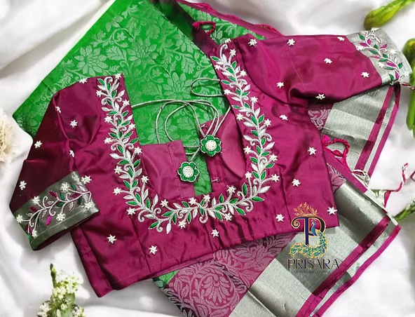 Aari embroidery Elevate Your Elegance with Pure Kanchipuram Soft Silk Saree and Custom Aari Embroidery Blouse By Prisara@321123 0 Comments Posted on February 14, 2025 When it comes to traditional Indian attire, nothing quite matches the grace and allure of a Pure Kanchipuram Soft Silk Saree. Known for its luxurious fabric, intricate designs, and timeless appeal, the Kanchipuram saree is a symbol of elegance that transcends trends. But what truly elevates this classic piece is pairing it with a customized designer Aari Embroidery blouse, tailored to perfection for you.Why Choose a Kanchipuram Soft Silk Saree?Kanchipuram silk sarees, woven in the temple town of Kanchipuram, Tamil Nadu, have been cherished for centuries for their unmatched quality and craftsmanship. Made from the finest mulberry silk, these sarees are known for their durability and rich texture. The addition of silver zari work further enhances the saree’s opulence, making it a perfect choice for weddings, festive occasions, and other significant celebrations.The Charm of Aari EmbroideryAari embroidery, a traditional art form that dates back to the Mughal era, is synonymous with detailed and elaborate designs. The precision of Aari work, combined with the ability to create intricate patterns, makes it a preferred choice for bridal and designer blouses. A custom Aari Embroidery blouse adds a personal touch to your saree, ensuring that your outfit is as unique as you are.What Makes This Combination Special?At PRISARA Boutique, we understand the importance of making your special occasions truly memorable. Our Pure Kanchipuram Soft Silk Saree with silver zari, paired with a customized Aari Embroidery blouse, is designed to do just that. The blouse features a simple and elegant design that perfectly matches the saree, with added details like back knot tassels to enhance its beauty.Whether you prefer a minimalist look or something more elaborate, our skilled artisans can customize your blouse to fit your style and budget. With our in-house manufacturing unit, we offer you high-quality designs at wholesale prices, making luxury accessible to everyone.How to Style This Ensemble– **Jewelry:** Opt for traditional temple jewelry or statement pieces that complement the silver zari in the saree. A pair of jhumkas and a choker necklace will complete your look.– **Hairstyle:** A classic bun adorned with fresh flowers or a braid with accessories will add to the traditional charm of your outfit.– **Footwear:** Pair your saree with embellished sandals or traditional juttis to maintain the elegance of the ensemble.Why PRISARA?At PRISARA Boutique, we believe that every woman deserves to look and feel her best. Our commitment to quality, attention to detail, and customer-centric approach have made us a trusted name in the industry. With over 10 years of experience and 1000+ students trained in Aari Embroidery, we bring expertise and passion to every piece we create.When you choose PRISARA, you’re not just buying a saree or blouse; you’re investing in a piece of art that reflects the rich cultural heritage of India. We take pride in offering customized solutions that cater to your individual needs, ensuring that you get the perfect outfit for every occasion.How to OrderReady to make a statement with your attire? Contact us at 📞 8951212424 to book your Pure Kanchipuram Soft Silk Saree and customize your Aari Embroidery blouse today. Experience the luxury of traditional Indian wear, tailored just for you, only at PRISARA Boutique.#KanchipuramSaree #PureSilkSaree #SilverZari #AariEmbroidery #DesignerBlouse #BridalWear #WeddingSaree #IndianEthnicWear #TraditionalAttire #HandloomSaree #CustomBlouseDesign #LuxurySarees #IndianFashion #PRISARABoutique #EthnicFashion #SareeLovers #SilkSareesOnline #WholesaleSarees #CustomTailoring #SareeShopping #KanchipuramSilk #IndianHandloom #BridalFashion #PRISARA Share:
