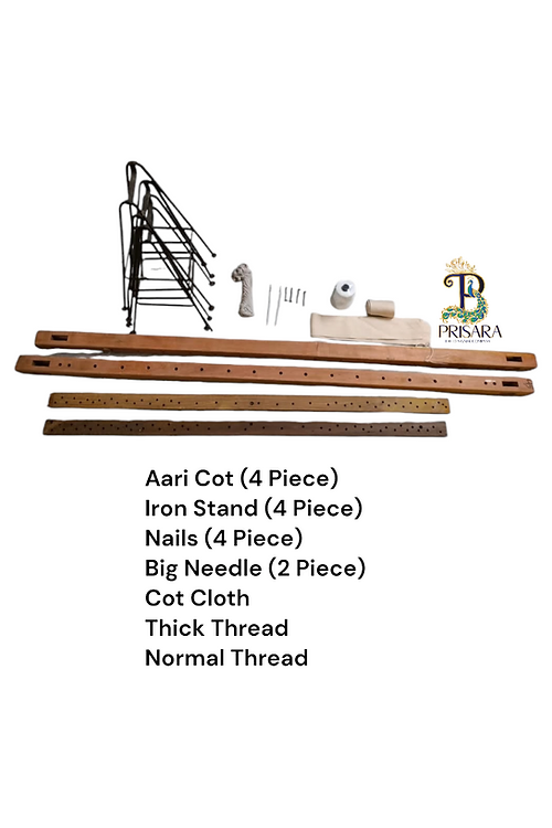 1. Aari Wooden Cot (4 pieces) – Premium quality for firm and reliable fabric fixation.