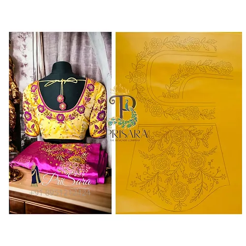 Simple aari embroidey design tracing paper. These papers are waterproof and non tareable. The design covers back neck of around 9 inch and front neck of around 6 inch and sleeves around 10 inch. You can adjust the measurements as per your requirements. For any queries contact +91 8951212424.