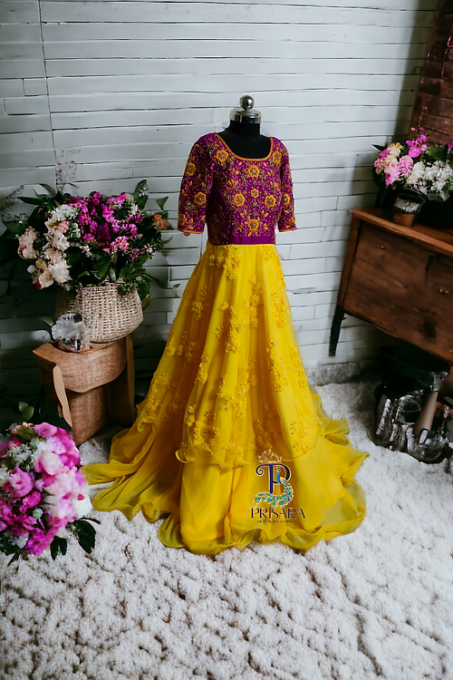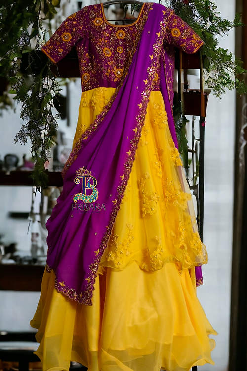 Discover the perfect blend of traditional elegance and modern design with our exclusive Mom and Daughter Combo. This set features a pure soft silk saree for mom, adorned with heavy, intricate, and detailed embroidery on the pallu, chest, and blouse. Paired beautifully with a designer double-layered gown for the daughter, this gown showcases exquisite embroidery work on the top and sleeves, complemented by a stunning dupatta with cutwork and embroidery on all four sides.Handcrafted with precision and love, this combo is customized to perfection for our cherished clients. Perfect for weddings, special occasions, and festive celebrations, this ensemble promises to make you and your little one stand out with grace and style.