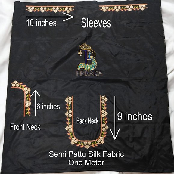 Luxurious: Handcrafted black semi-pattu silk fabric with intricate aari/maggam embroidery featuring floral designs. Embellishments: Adorned with lustrous pearl beads, zardosi, and thread work for an opulent appearance. Versatile: Unstitched fabric measuring one metre, suitable for creating exquisite sarees, lehengas, or kurtas. Authentic: Showcasing traditional Indian artisanship and attention to detail. Occasion-Wear: Perfect for festive occasions, weddings, or formal events where elegance is desired.