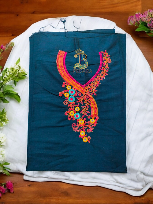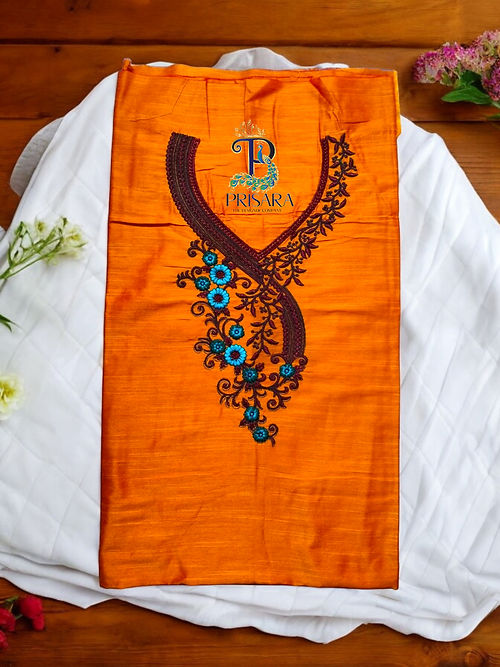 Introducing PRISARA BRAND’s exclusive line of unstitched kurthi materials, meticulously crafted on semi-raw silk fabrics and adorned with intricate machine embroidery. Each piece measures 2.5 meters, offering ample material for a tailored fit. Designed to accommodate sizes up to 5XL, our kurthi materials blend comfort with style, ensuring a flattering look for every body type. Whether you’re ordering in bulk or seeking personalized stitching, PRISARA BRAND has you covered. Elevate your wardrobe with our exquisite machine-embroidered kurthi collection today!