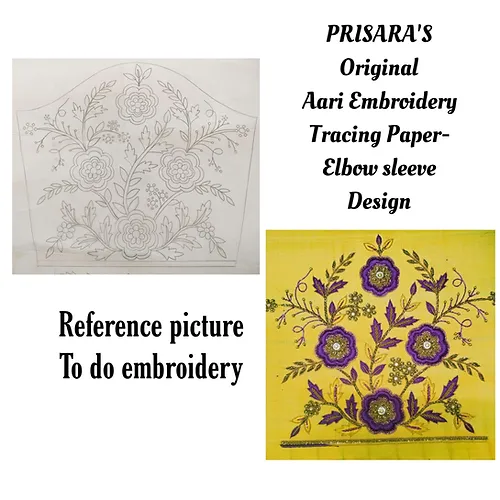 Simple aari embroidey design tracing paper. These papers are waterproof and non tareable. The design covers back neck of around 9 inch and front neck of around 6 inch and sleeves around 10 inch. You can adjust the measurements as per your requirements. For any queries contact +91 8951212424.