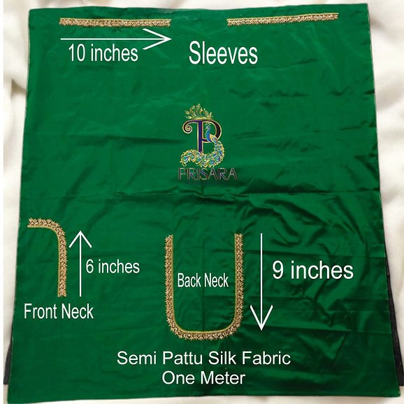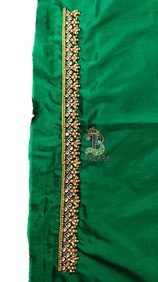 PRISARA-Green Aari/Maggam Embroidery Blouse Unstitched Semi Pattu Silk Fabric with Heavy Beads and Kundan Stones Work-One Meter