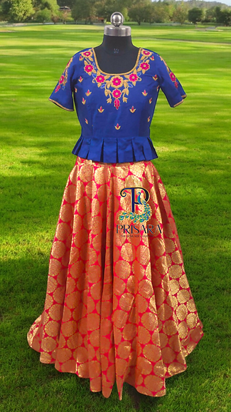 Features: High-Quality Zari Work: The lehenga skirt is made from luxurious brocade fabric, adorned with intricate zari work that adds a royal touch. Semi Raw Silk Top: Crafted from semi raw silk, the top offers a smooth texture and a sophisticated finish. Heavy Embroidery: Detailed embroidery on the neck and sleeves enhances the overall beauty of the lehenga set. Customizable Design: Personalize your lehenga with a wide selection of colors and patterns, creating a piece that reflects your unique style.