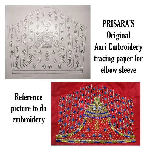 Simple aari embroidey design tracing paper. These papers are waterproof and non tareable. The design covers back neck of around 9 inch and front neck of around 6 inch and sleeves around 10 inch. You can adjust the measurements as per your requirements. For any queries contact +91 8951212424.