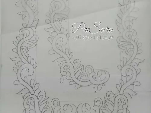 Simple aari embroidey design tracing paper. These papers are waterproof and non tareable. The design covers back neck of around 9 inch and front neck of around 6 inch and sleeves around 10 inch. You can adjust the measurements as per your requirements. For any queries contact +91 8951212424.