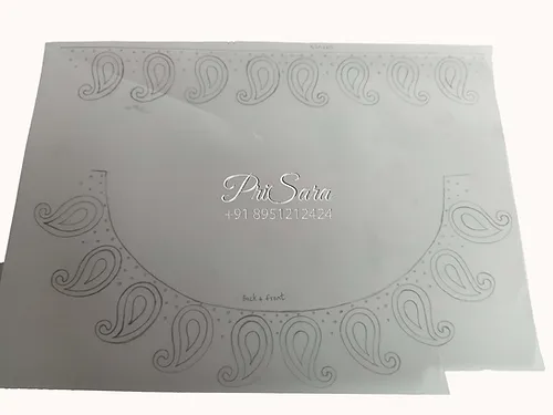 Simple aari embroidey design tracing paper. These papers are waterproof and non tareable. The design covers back neck of around 3 inch and sleeves around 10 inch. You can adjust the measurements as per your requirements. For any queries contact +91 8951212424.