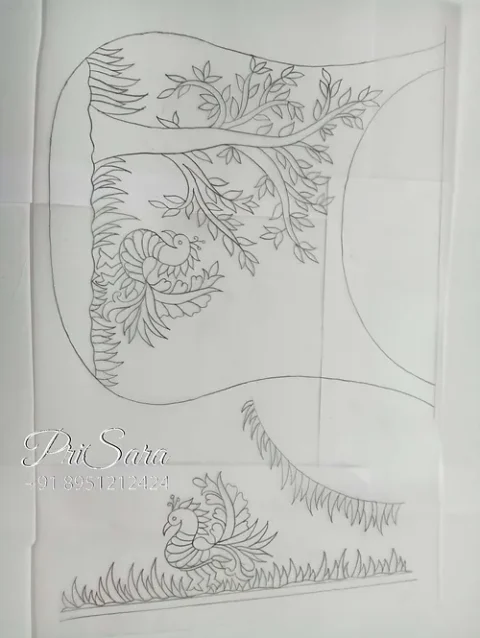 Simple aari embroidery design tracing paper. These papers are waterproof and non tareable. The design covers back neck of around 9 inch and front neck of around 6 inch and sleeves around 10 inch. You can adjust the measurements as per your requirements. For any queries contact +91 8951212424.
