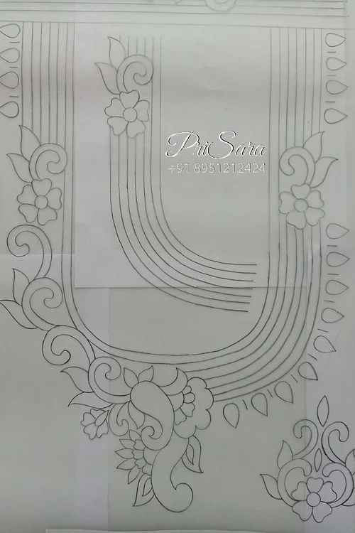 Simple aari embroidey design tracing paper. These papers are waterproof and non tareable. The design covers back neck of around 9 inch and front neck of around 6 inch and sleeves around 10 inch. You can adjust the measurements as per your requirements. For any queries contact +91 8951212424.