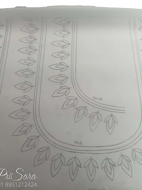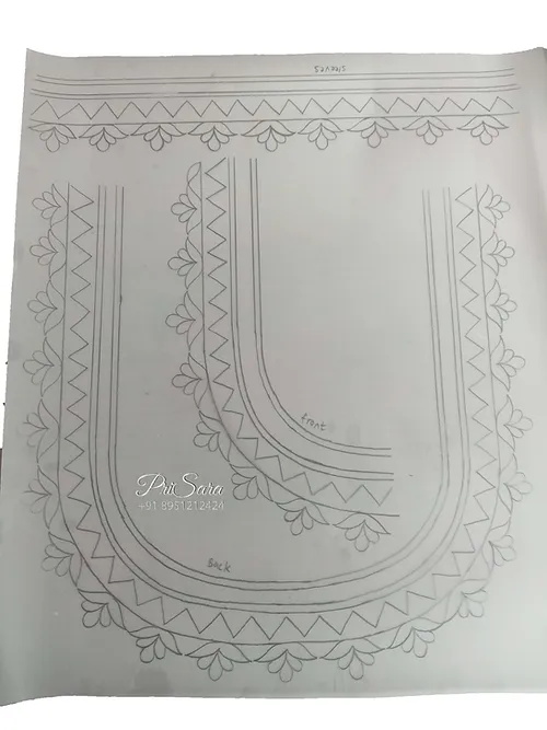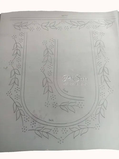 Simple aari embroidey design tracing paper. These papers are waterproof and non tareable. The design covers back neck of around 9 inch and front neck of around 6 inch and sleeves around 10 inch. You can adjust the measurements as per your requirements. For any queries contact +91 8951212424.