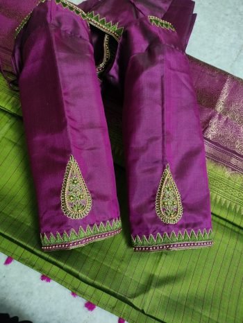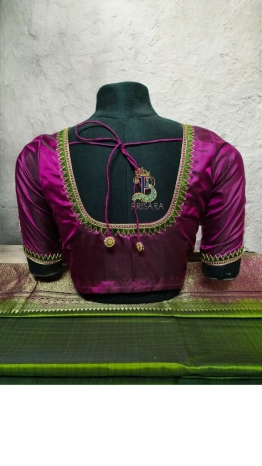 Uncategorized Temple Touch – Simple Thread Work Blouse with Pyramid Border By Prisara@321123 0 Comments Posted on April 17, 2025 Sometimes, the most beautiful blouses are the ones that keep it simple, meaningful, and elegant. This temple border pyramid-shaped blouse design from PRISARA is a perfect example of how minimalistic thread work can still turn heads. Ideal for festivals, weddings, or even everyday traditional wear – this blouse is all about grace with purpose. Design Highlights Back neck features a pyramid-shaped temple border motif, crafted using green thread to match the saree tone perfectly. Beads work is subtly added to enhance the design, without making it too heavy. The sleeves mirror the neckline’s design, with an additional central motif that completes the traditional look. This design is perfect for women who love classic Indian patterns with a modern embroidery finish. Why You’ll Love It Lightweight, breathable, and beautiful Green thread work offers a traditional yet fresh look Suitable for daily wear sarees, festive outfits, and temple visits A must-have for those who love heritage motifs with subtle elegance Customization & Orders Looking to customise yours directly from the manufacturer at wholesale prices?Call 8951212424 and create your own version with your favorite color combinations. Want to learn how to make this elegant blouse by yourself?Join our Aari/Maggam Embroidery Classes – online or offline. Visit www.prisara.com today. #TempleBorderBlouse #PyramidDesignBlouse #GreenThreadWork #BeadsWorkBlouse #SimpleElegantBlouse #TraditionalBlouseDesign #CustomMadeBlouses #PrisaraDesigns #AariWork #MaggamWork #HeritageBlouseDesigns #MinimalBlouseLook #SareeMatchingBlouse #WholesaleBlouseDesigns #HandEmbroideredBlouse #LearnEmbroidery #BangaloreBoutique #ThreadWorkMagic Share: